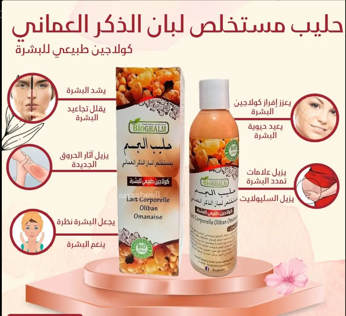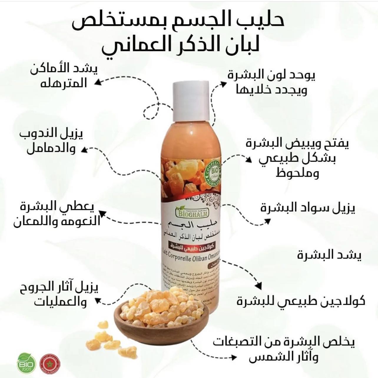 تشمل فوائد اللبان قدرته على تقوية البشرة وتحسين لونها ومرونتها وآليات دفاعها ضد البكتيريا أو الشوائب، ومظهرها مع تقدم العمر