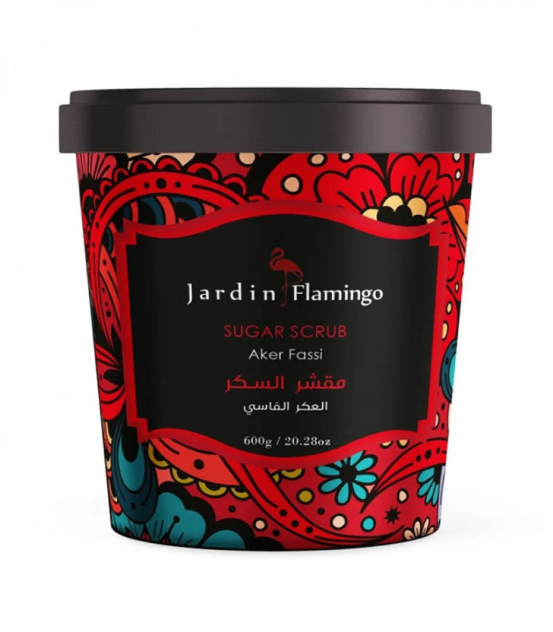 Jardin Flamingo Aker Fassi Sugar Scrub is a luxurious natural Moroccan exfoliator enriched with sugar crystals and Aker Fassi (poppy flower powder). This traditional beauty secret from Morocco gently removes dead skin cells, unclogs pores, and leaves your skin soft, radiant, and deeply nourished.