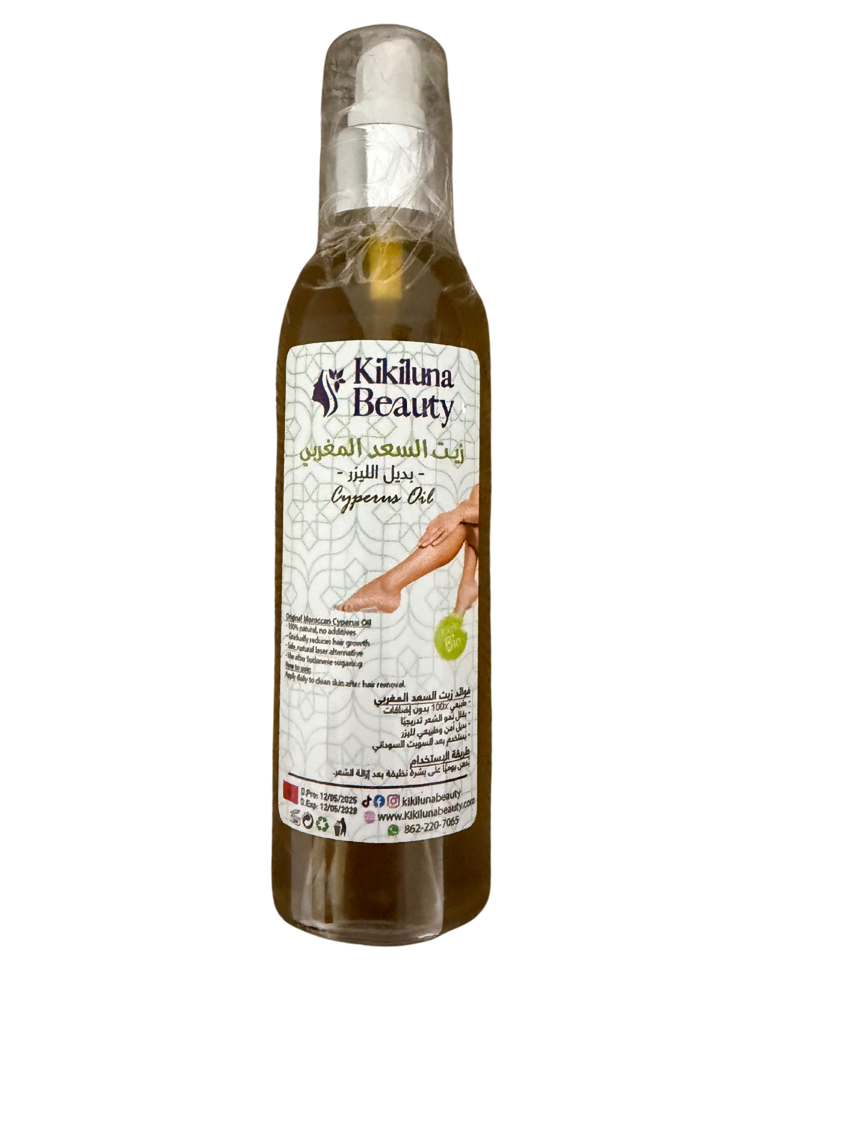 Discover the authentic Moroccan Cyperus Oil — 100% pure, cold-pressed, and free from any additives. Traditionally used to naturally slow unwanted hair growth and deeply nourish the skin. This premium 250ml bottle offers a natural solution for soft, healthy skin.