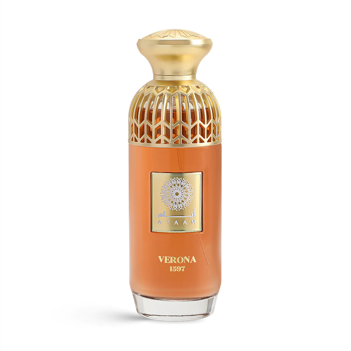 عطر فيرونا 1597 – 250 مل من Ayaam مستوحى من أجواء الرومانسية الكلاسيكية في مدينة فيرونا الإيطالية. تركيبة منعشة للجنسين، تبدأ بنفحات فاكهية من التوت، البرغموت، والكشمش الأسود، تليها لمسة أنيقة من الياسمين والجلد، وتستقر على قاعدة دافئة من المسك والفانيليا.